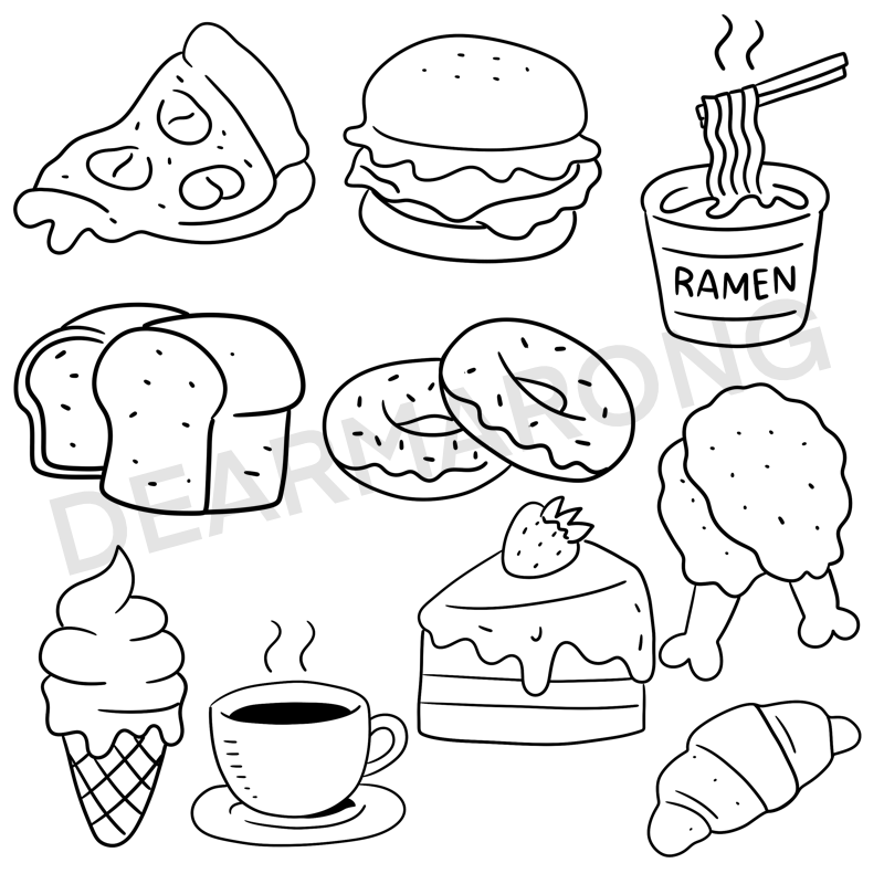 다꾸용 라인드로잉 먹거리 스티커