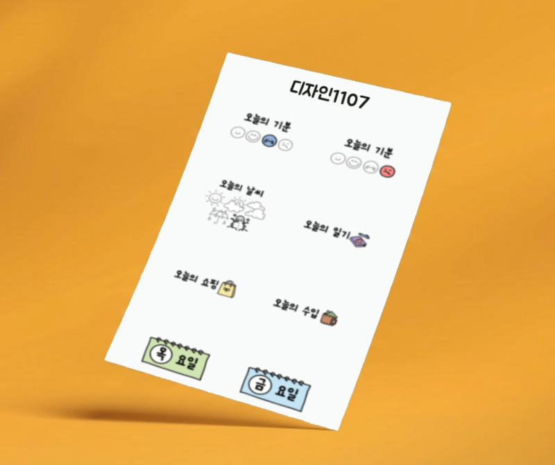 일기를 쓸 때 꼭 필요한 날씨, 기분, 일과, 요일이 포함되어 있습니다.